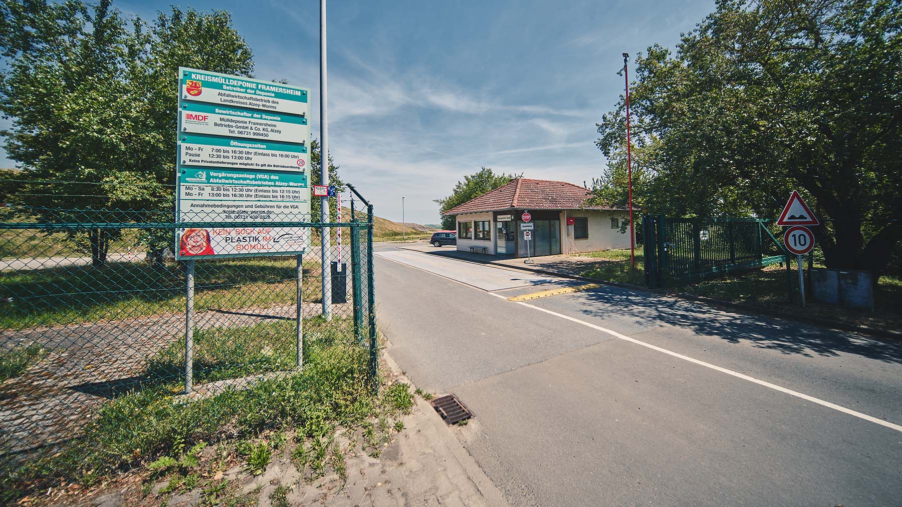 - Nach der Ortseinfahrt Framersheim rechts abbiegen Richtung „Entsorgungsanlagen/Deponie“