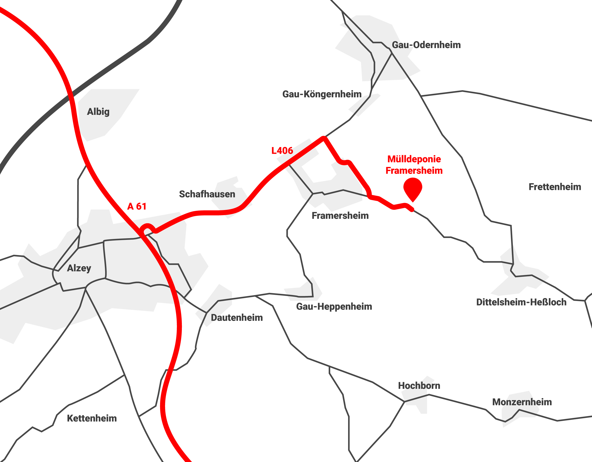 Hinweis: Die Ortsdurchfahrt durch den OT Framersheim ist für den Deponieverkehr gesperrt.